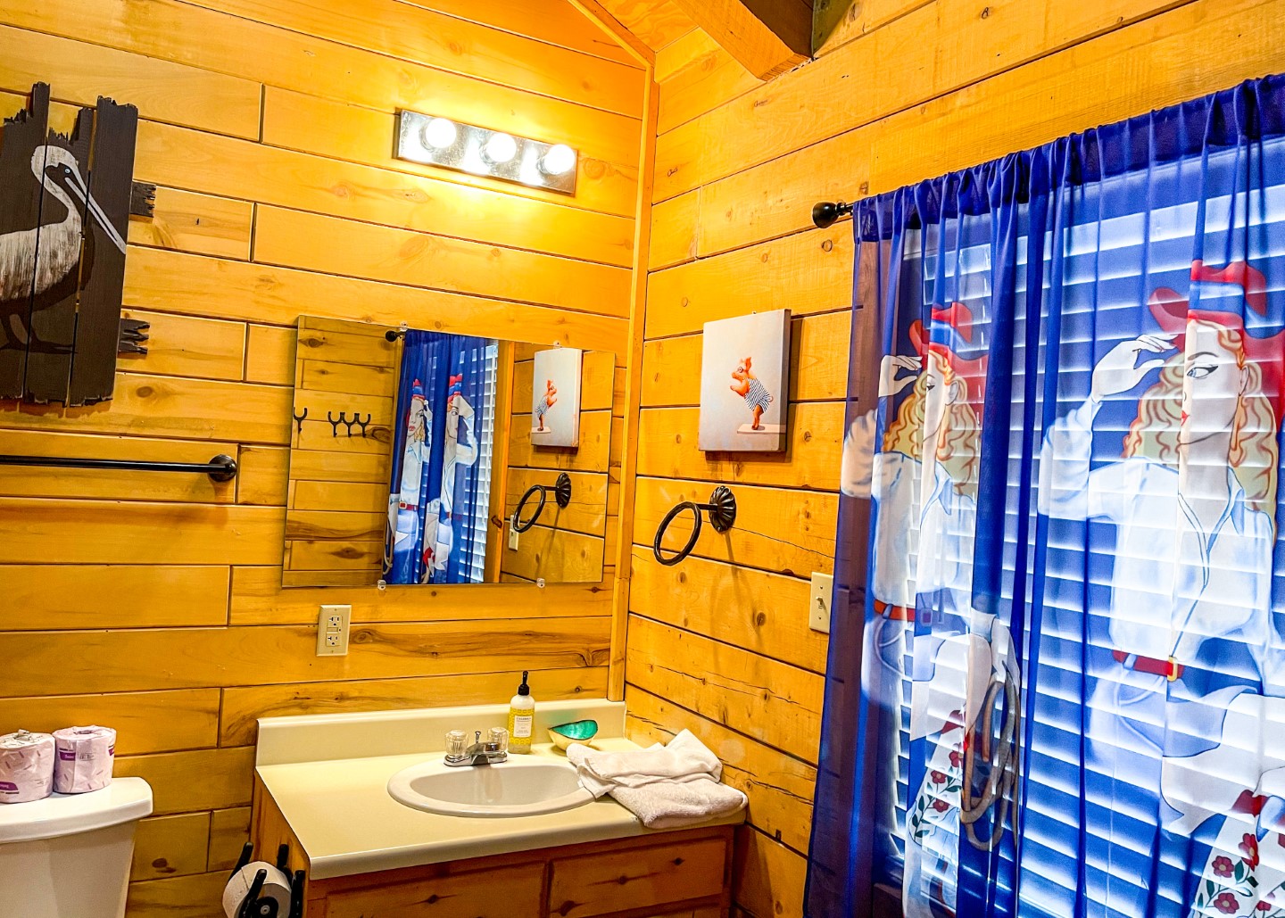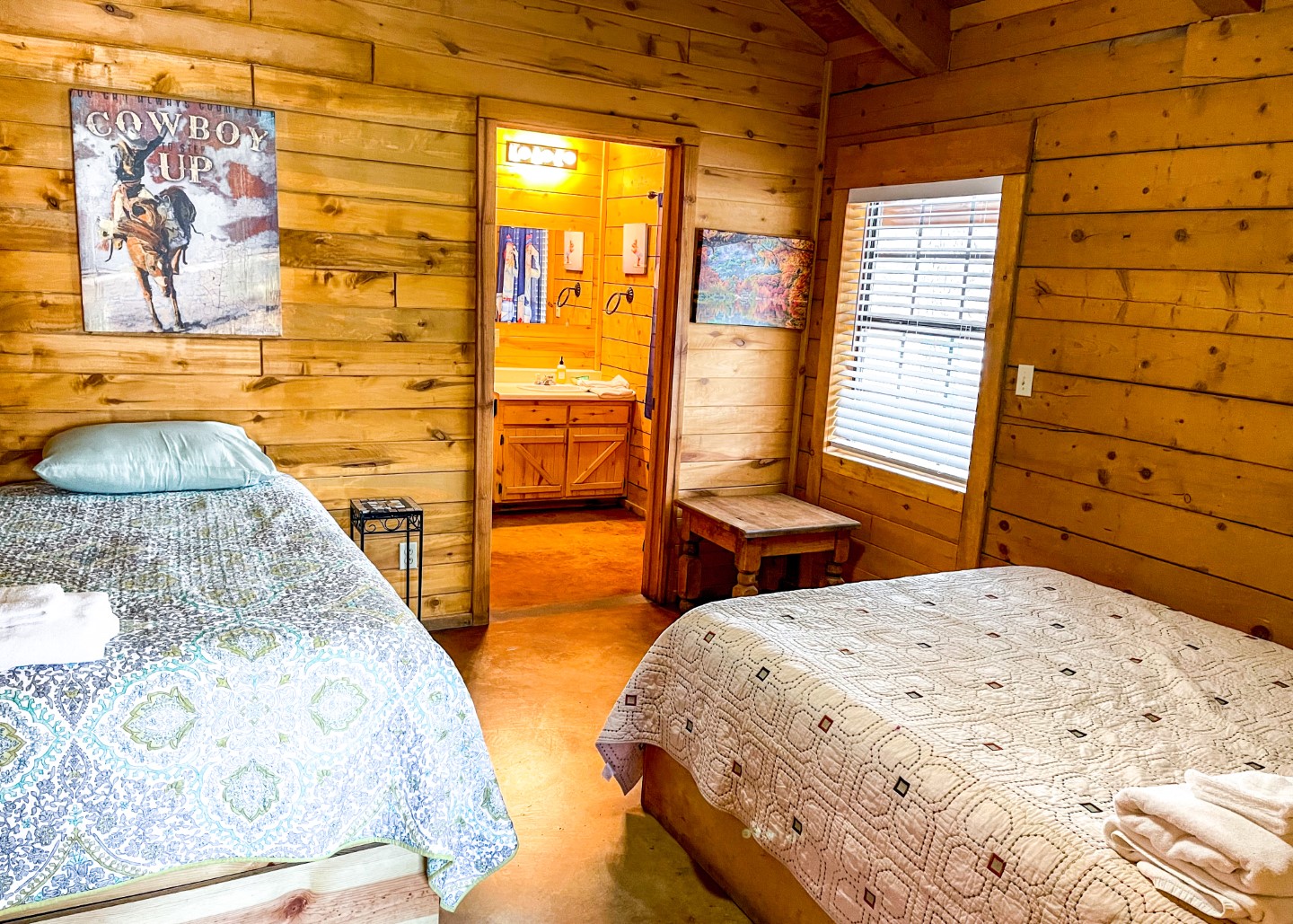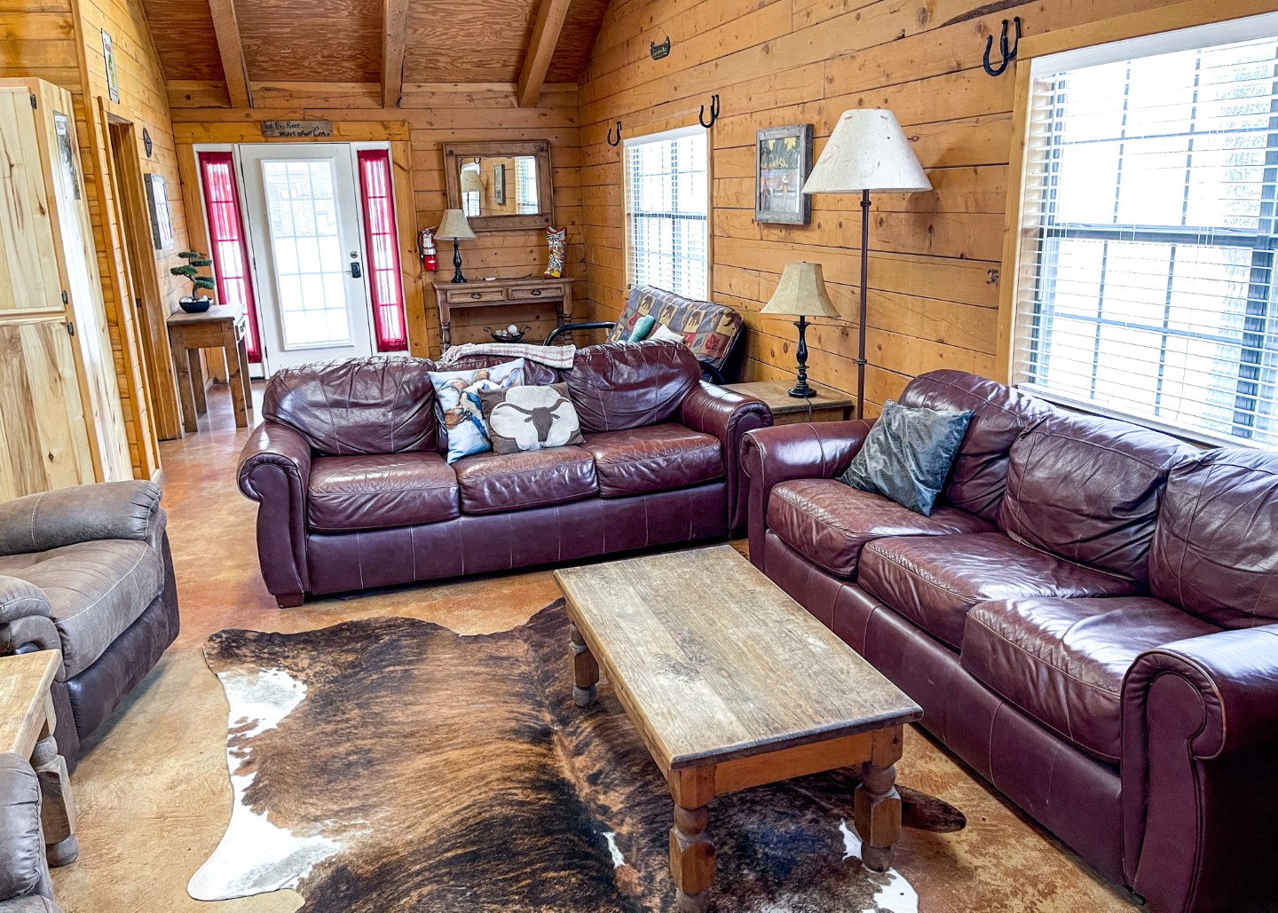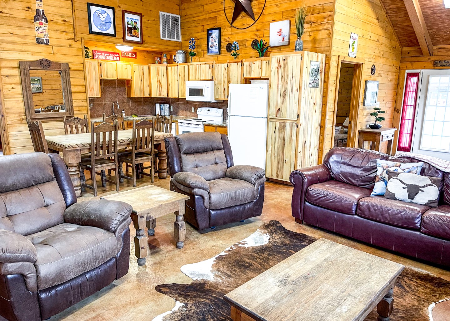 House #18 is fully furnished, color TV with DirecTV Satellite and DVD, front and back porches. Two bedrooms have queen size beds and a-single. The third bedroom has a queen bunk and attached bath. This house used to be our game room. It is located directly across from the office and next to a fire ring. Only three vehicles may be parked at this house ($5.00 per day charge for each additional vehicle).